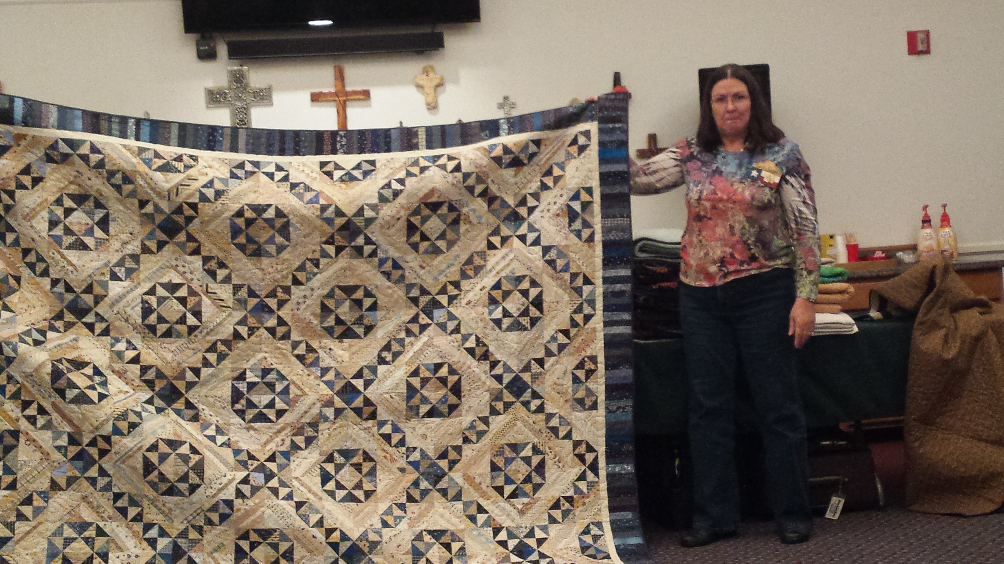 The photos are courtesy of Laurie.  Your webmaster was working and unable to attend.  These are a mixture of Show & Tell and Charity quilts