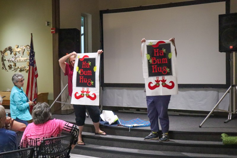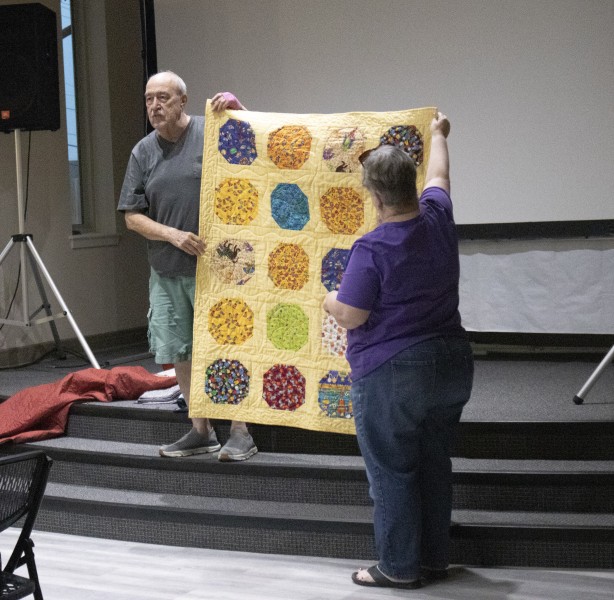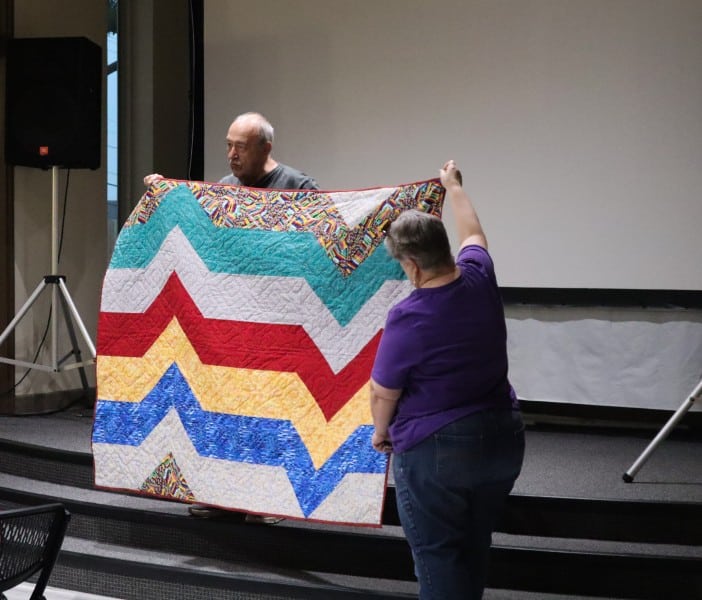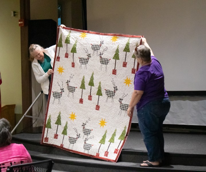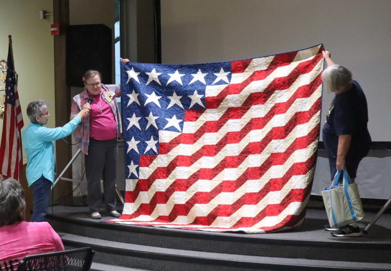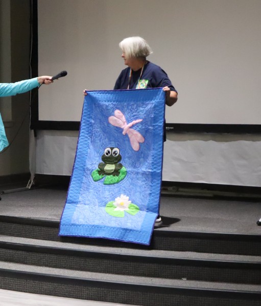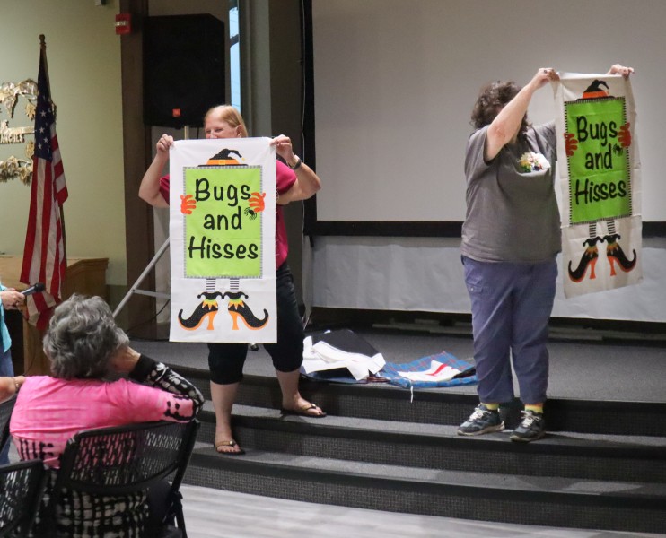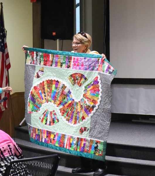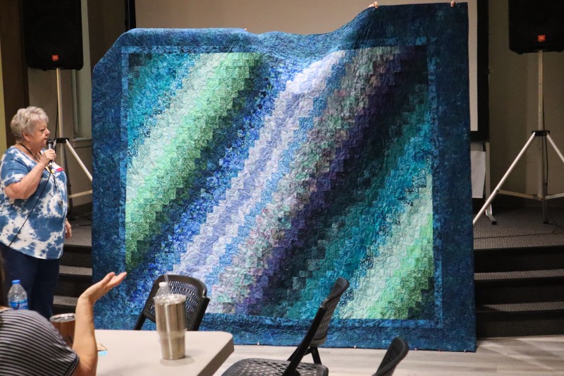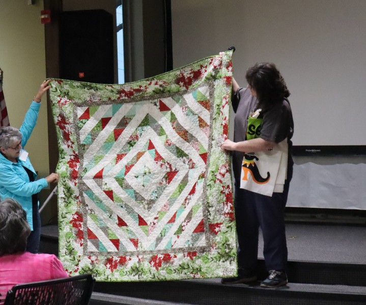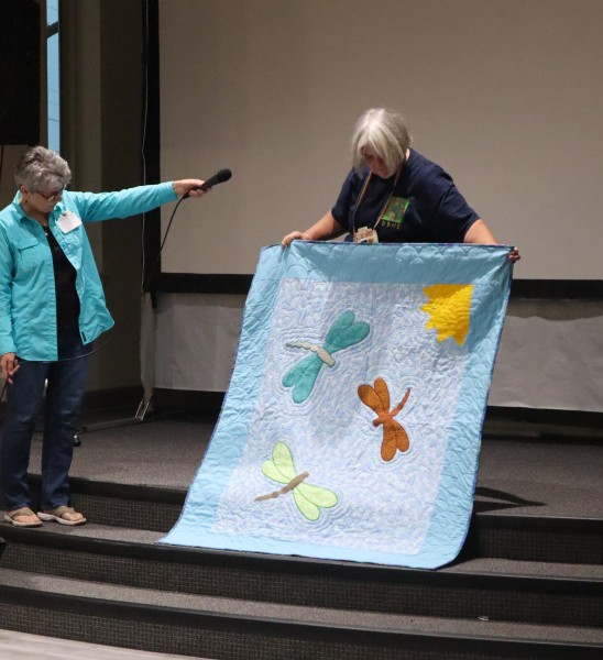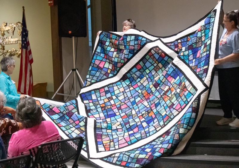 Great quilts as usual. Really liked all of them – but Esther had an impressive flag quilt and that stained-glass quilt! and that huge blue-green auction quilt and that wonderful basket for the auction too! and so much more.
